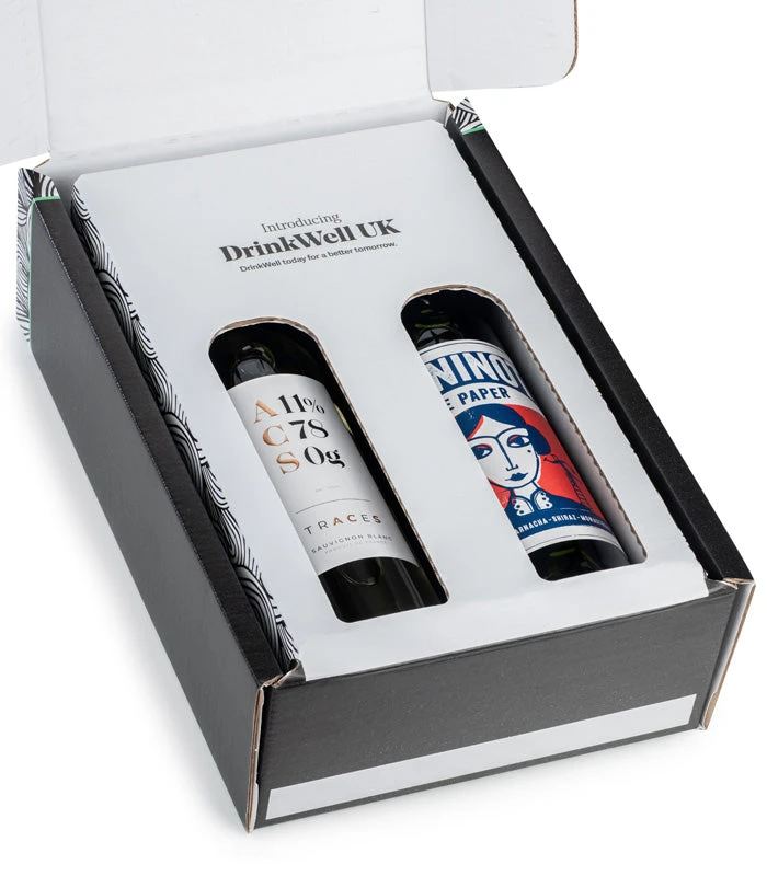 Our DrinkWell Wine Gift Box Set contains two of our best selling white and red wines, wrapped in our 2 bottle box. The perfect gift for wine lovers.